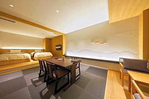 The spacious air-conditioned quadruple room offers a flat-screen TV, tatami, a wardrobe, a safe deposit box as well as garden views. The unit offers 2 beds and 2 futons.